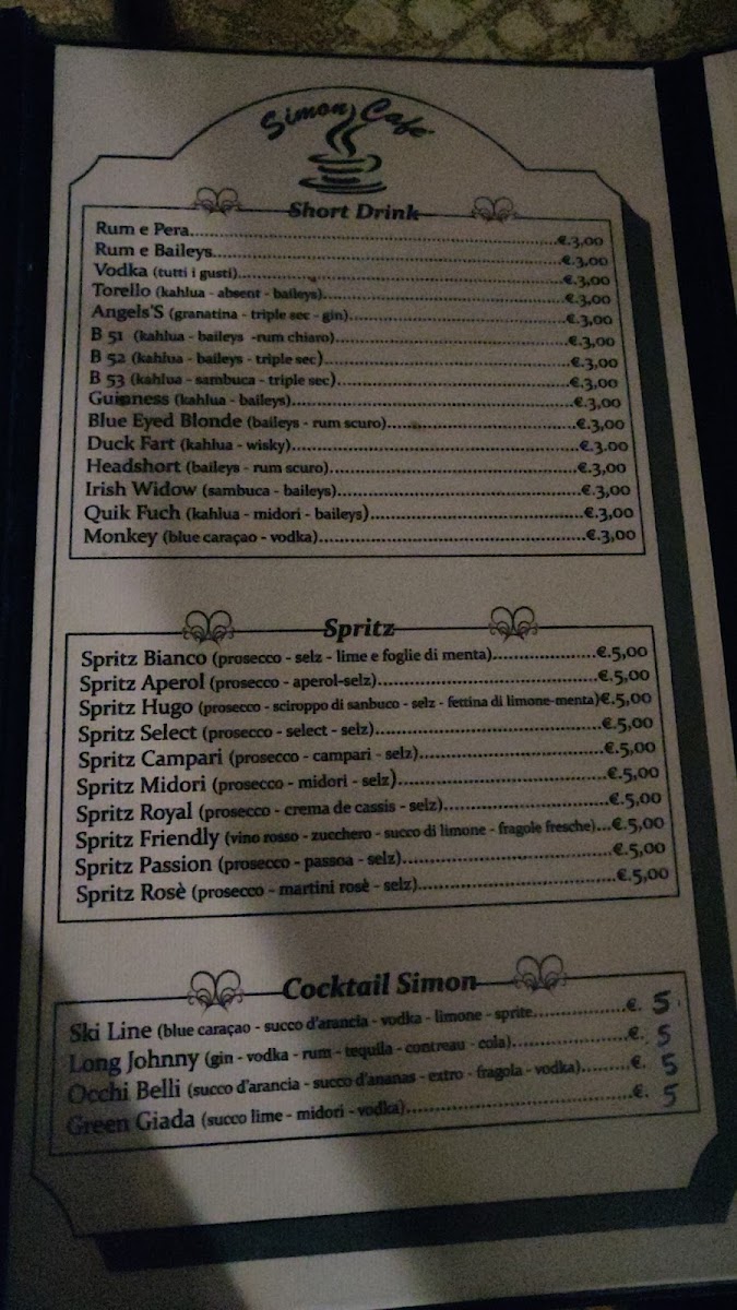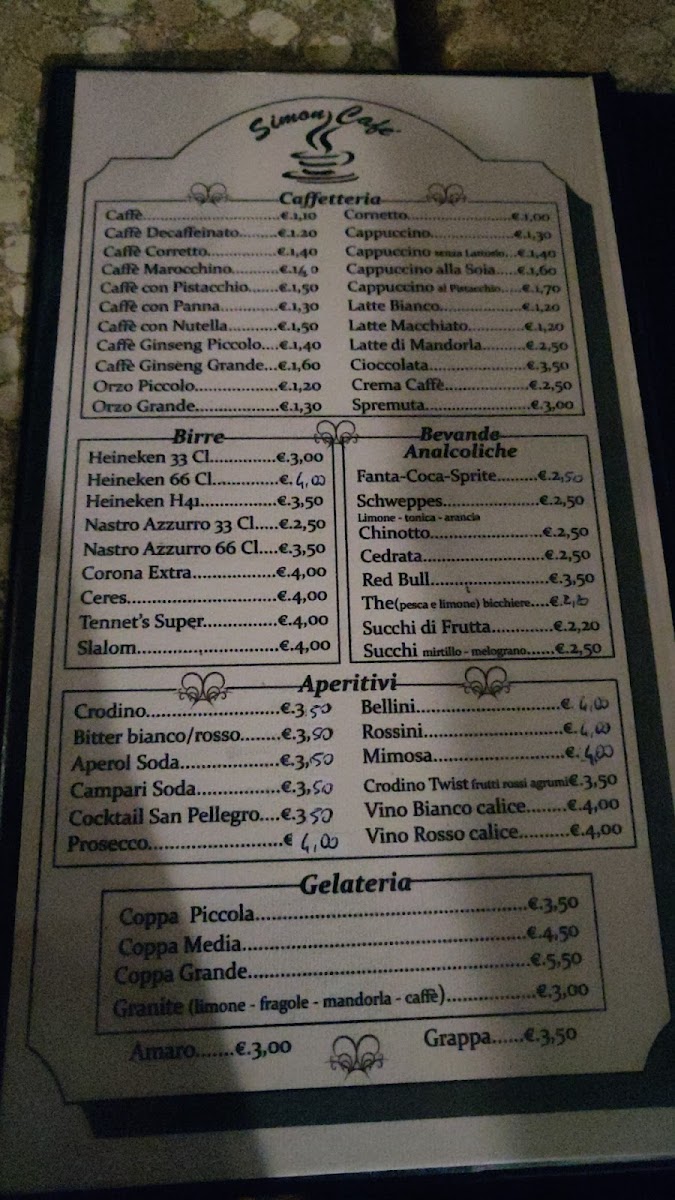 “ Siamo stati al Simon Caffè per un’apericena tra amici: atmosfera tranquilla, cibo semplice e buono, personale gentile e sorridente. Ci siamo trovati molto bene. ”